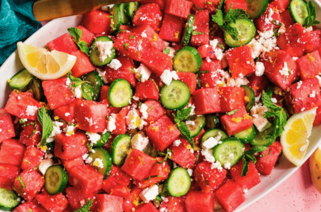 Watermelon, Cucumber, Feta Cheese, Mint, Olive Oil